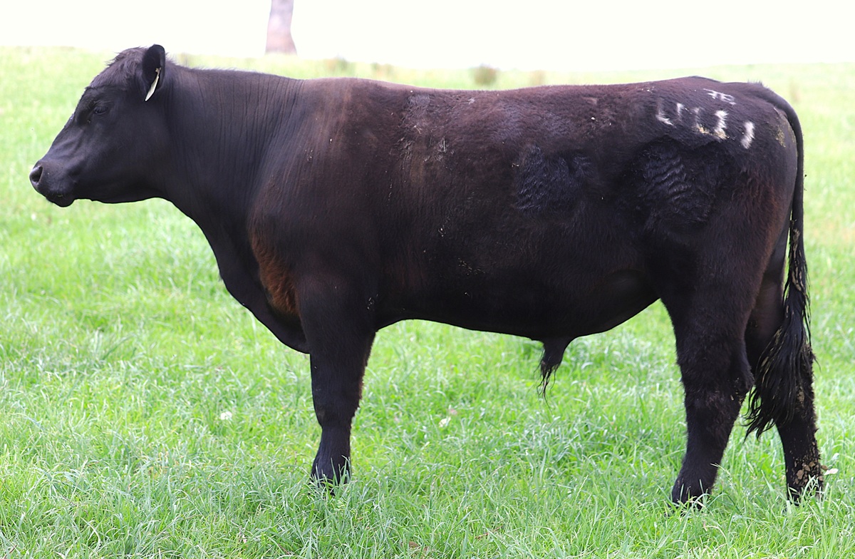 By AI from outstanding carcase bull Bongongo Be Quick Q227. Angus royalty on both sides from grandsires Lawson's Momentous M518 and Rennylea Edmund E11, producing a hard-to-find combination of solid muscling together with high intra-muscular fat (top 6 percent). Moderate cow size, safe calving ease for heifers and milk in the top 1% produce a $A Index in the top 5% of the breed.